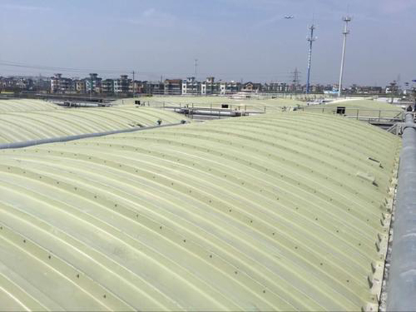 3、輕質(zhì)高強(qiáng)、安裝方便:玻璃鋼集氣罩比重僅為鋼制品的1/3至1/4,固化程度高,載荷負(fù)重大,強(qiáng)度高,適用于大跨度池體,同時(shí)蓋板可分為若干小塊,便于運(yùn)輸、安裝。